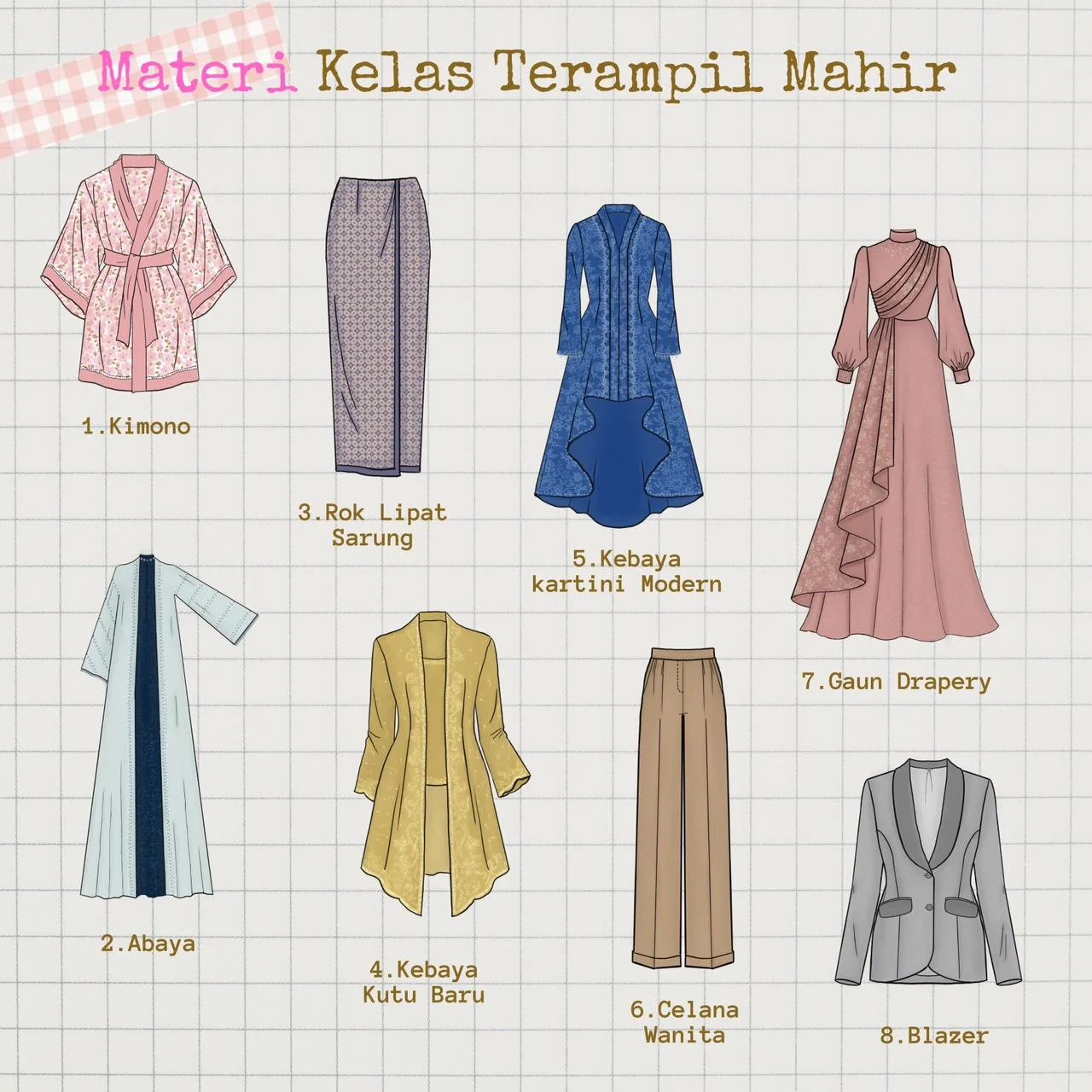 Belajar membuat pola dan menjahit 8 model materi praktek